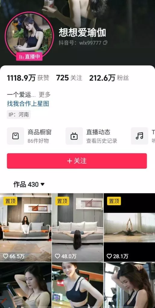 抖音平台的一些主播以健身和运动为名,将挑逗性内容融入直播,尤其是“想想爱瑜伽”主播,由于展示了她优秀的身材和柔韧性,反复使用这些动作吸引了大量粉丝。她的私生活一直有流言,说她有“大哥”资助她的直播。最近传出她和新的“大哥”发生感情,导致原“大哥”将她的视频公开,影响了她的形象和声誉。