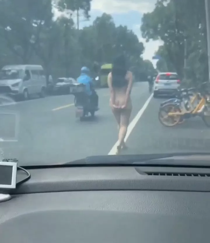 北京街头惊现果女上街出游赤身果体旁诺无人疑似感情受挫?