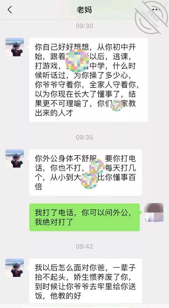 通常是父亲每隔几天和我扔扔视频通话,我若在场则在扔扔后面附和几句。我几乎没有与母亲通话,也从未与她私下交流过,不知应说些什么。敏感的词句我不敢发,唯恐父亲在一旁看见,后果将不堪设想,而普通的信息又不知道说什么。
