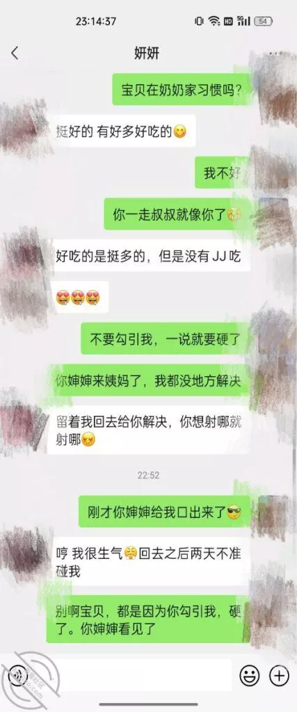 经过今天这个事情发生让我觉得我一定要小心小心再小心了,感觉自己就是在玩火,不一定哪天纸就包不住火了,我得赶紧跟老婆预预热什么的,不然迟早被发现别到时候妻离子散的,大家在都知道因为什么,这个地方都没办法待下去了,老婆回来之后我还问了侄女,侄女说就是故意的,兄弟们你们说我该怎么办啊,下面附上和侄女的聊天截图,兄弟们给我出出主意吧!
