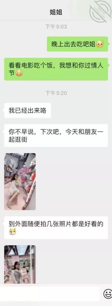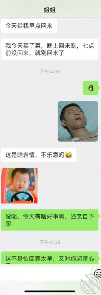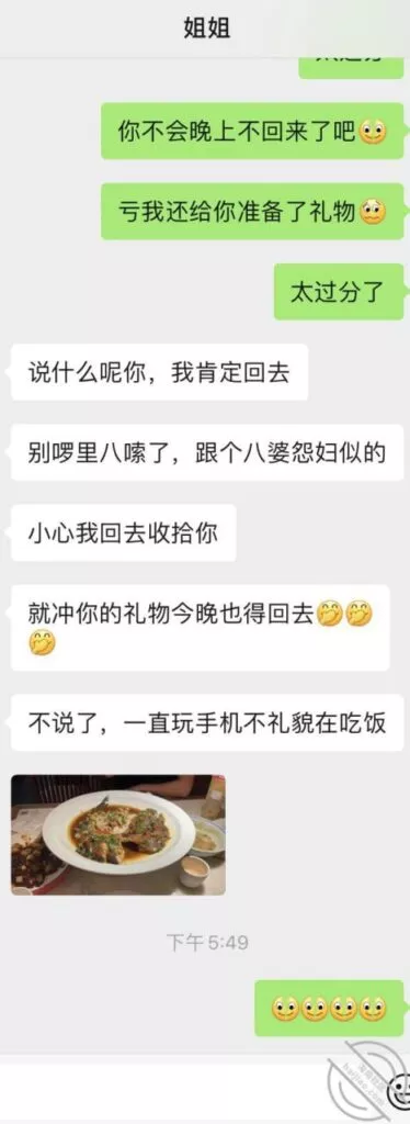 兄弟们有进展,本来因为昨天早上的事已经和姐姐无交流超过24小时了,包括昨天晚上我也是很晚回去,姐姐也没发一条消息叫我回去,都以为要芭比q了,中午不甘心给姐姐发了一堆消息,爱慕,不舍,情话都用上了,终于姐姐回我消息了,聊了一些事情