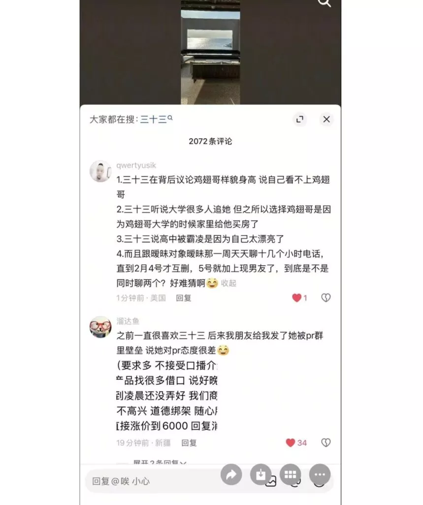 先提车后分手,抖音40万粉丝清纯网红三十三,打着一手清纯好女孩的人设,实际非常拜金,周旋于数个男人之间,卖弄清纯人设,利用完后果断丢弃,甚至伪造事实,引导粉丝网暴前男友。