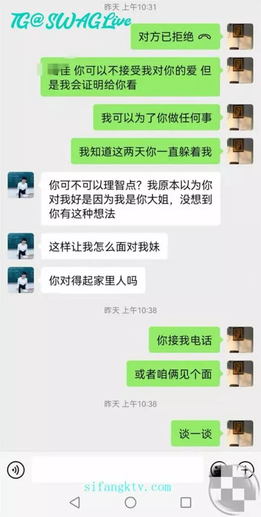 删除了我微信,我更气愤了,给我姐夫打电话了,其实我没说啥,就是吓吓我大姨子,但是她听见我打电话了,以为我真的要跟我姐夫说点什么,她的神经高度紧张,不出我所料,立马给我加回来了!