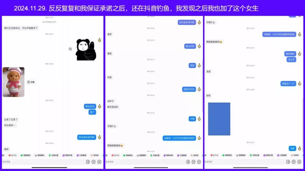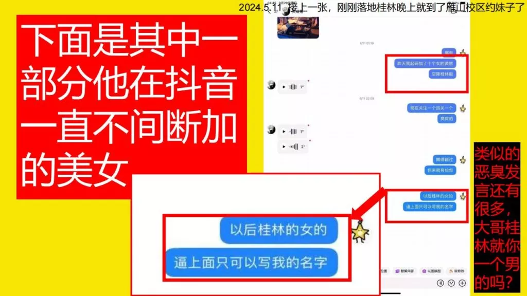 69页超长ppt曝光桂林理工大学街舞社副队长莫俊伟,时间管理大师的最佳门徒,交往两年期间,同时与至少四名女生保持暧昧,爱情的小船不堪重负。