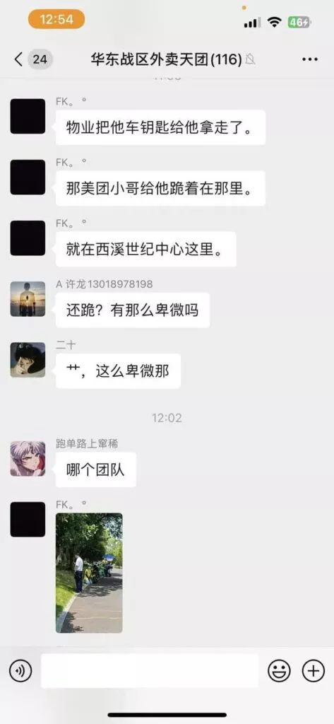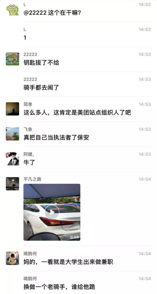 得知消息的外卖骑手们丢掉手里的工作,火速前往现场,支援被欺负的女骑手。