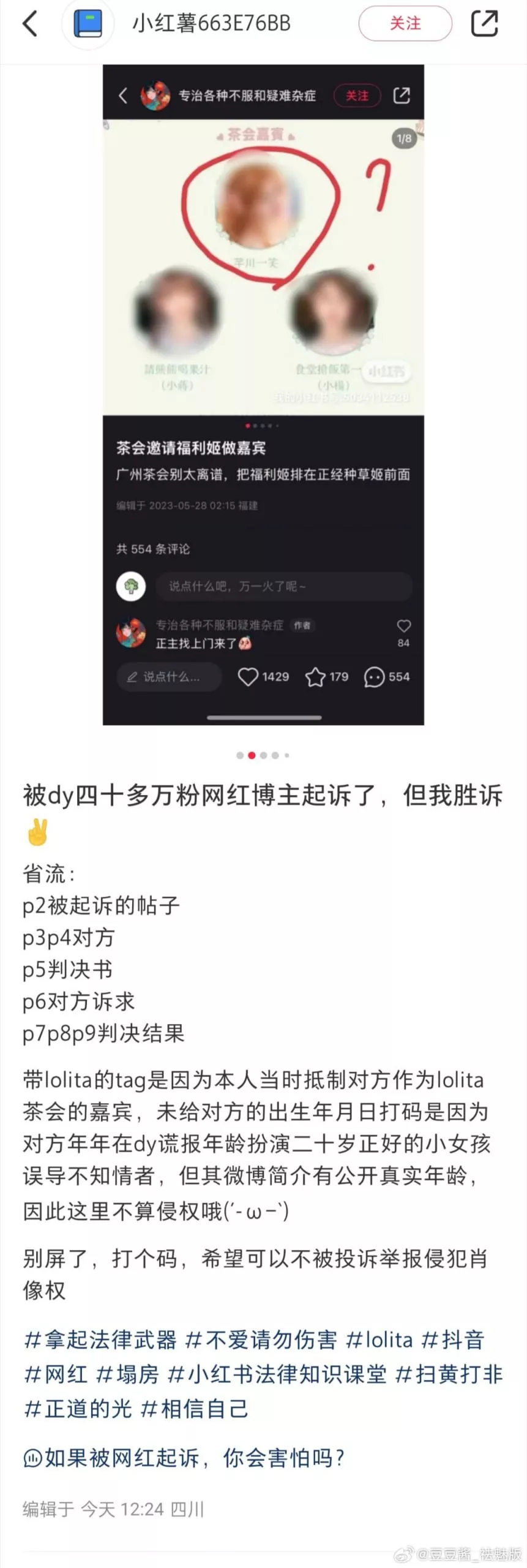 这真是一件二次元圈子里2024年,年度顶级抽象事件。事情起因是一位网友在社交平台发布了一些评论,点评了coser芊川一笑的尺度过大,明显在玩擦边。被coser芊川一笑起诉后,于昨日宣布coser芊川一笑败诉,成为了被国家认定的真·福利姬。