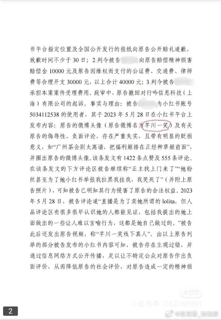 国家认定福利姬?网红coser芊川一笑起诉名誉被毁案败诉