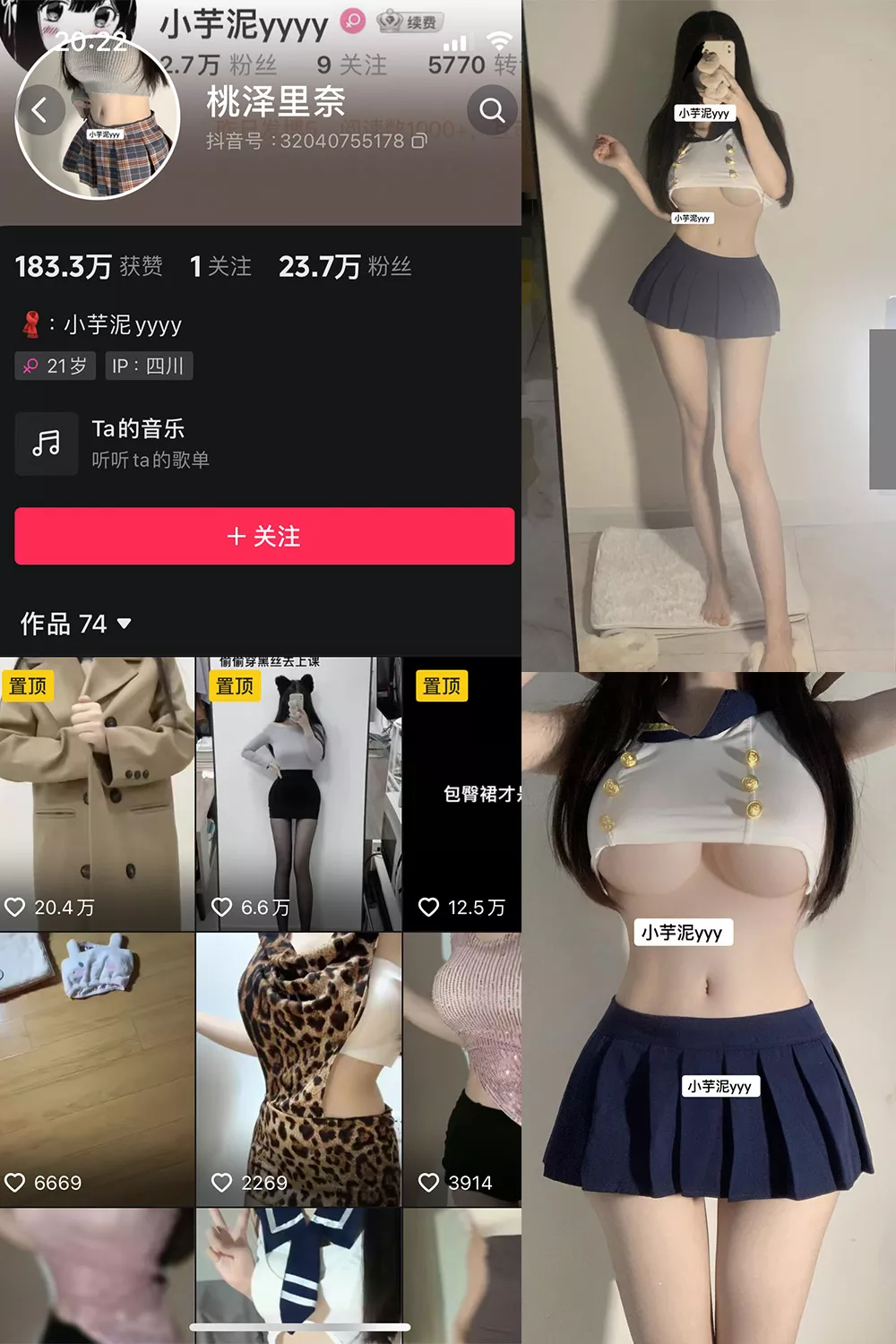这期的小芋泥摇身一变,化作兼具清纯与性感的水手少女,身穿短款制服和百褶裙,带来绝对的视觉盛宴。短上衣的设计巧妙地展现出她平坦的小腹和迷人的腰线,搭配高腰短裙,既活泼又透着一丝撩人。镜中的她,修长身姿与匀称比例完美演绎了这一造型的精髓,双腿线条更是让人过目不忘。整组照片中,她或是轻轻抬手,或是悠然自得地站立,每一个动作都仿佛在讲述一个梦幻般的故事。这套写真简直是本期的超级明星,绝对值得你收藏一番!