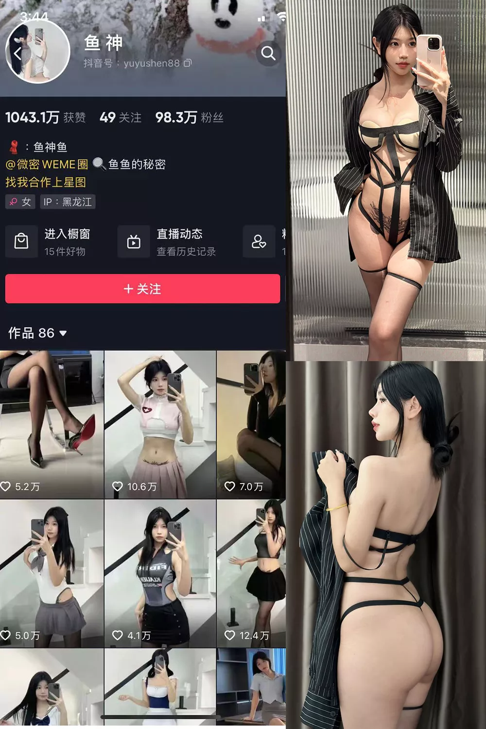 她的每一个动作都散发出满满的自信与挑逗,每一张照片更是让人感受到她无法抗拒的魅力。无论是那背后流露出的妩媚曲线,还是与镜头亲密无间的互动,鱼神总是能将性感与优雅完美融合。快来感受鱼神带来的每一瞬间魅力,让她引领你进入一个充满诱惑的视觉世界吧!