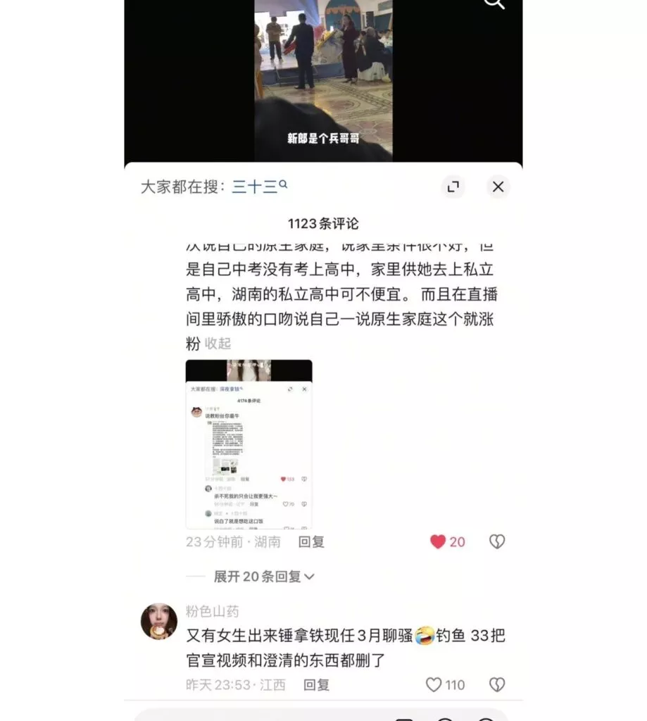 先提车后分手,抖音40万粉丝清纯网红三十三,打着一手清纯好女孩的人设,实际非常拜金,周旋于数个男人之间,卖弄清纯人设,利用完后果断丢弃,甚至伪造事实,引导粉丝网暴前男友。