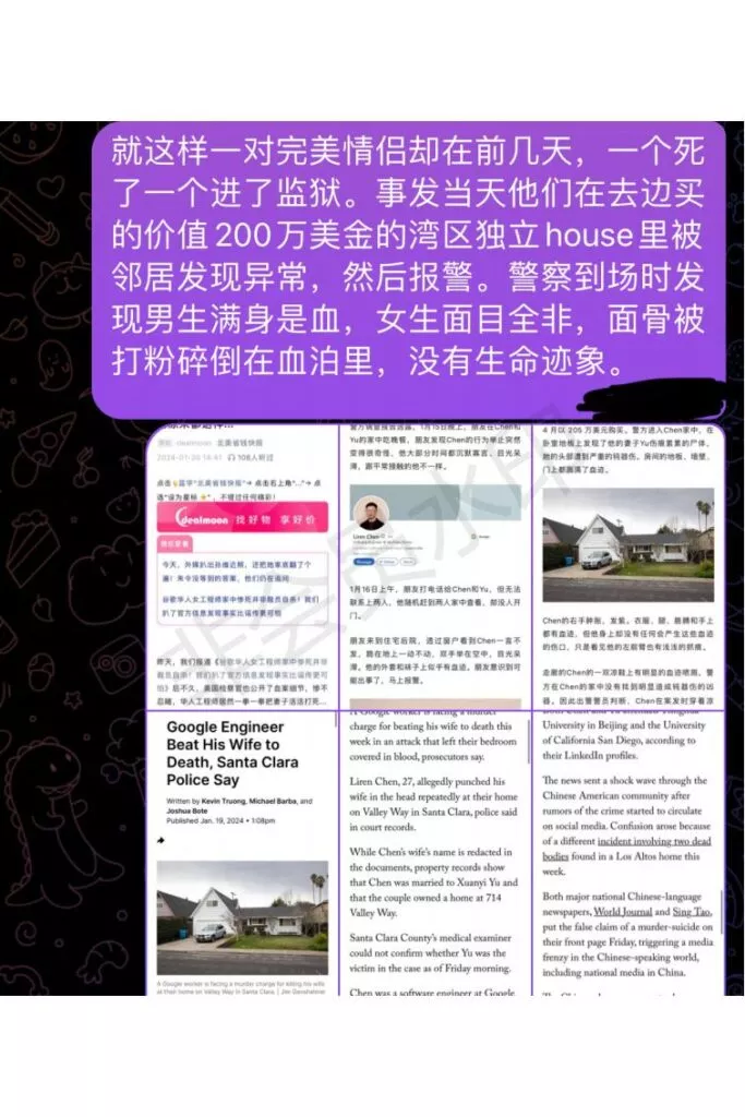 PPT中透露陈立人的妻子,其实早就有过多次出轨行为,甚至参加了多次银帕,并且指出正是去年被曝光的UCSD大瓜的主人公Vince(瓜老师之前发表过想关内容主页搜索UCSD即可)。也就说,陈立人的杀人动机,正是被妻子的不忠行为彻底激怒,造成了一场悲剧。详细内容请看PPT,文末附带下载链接