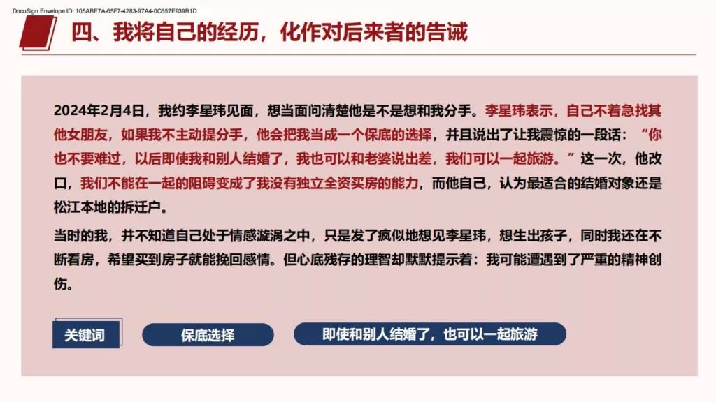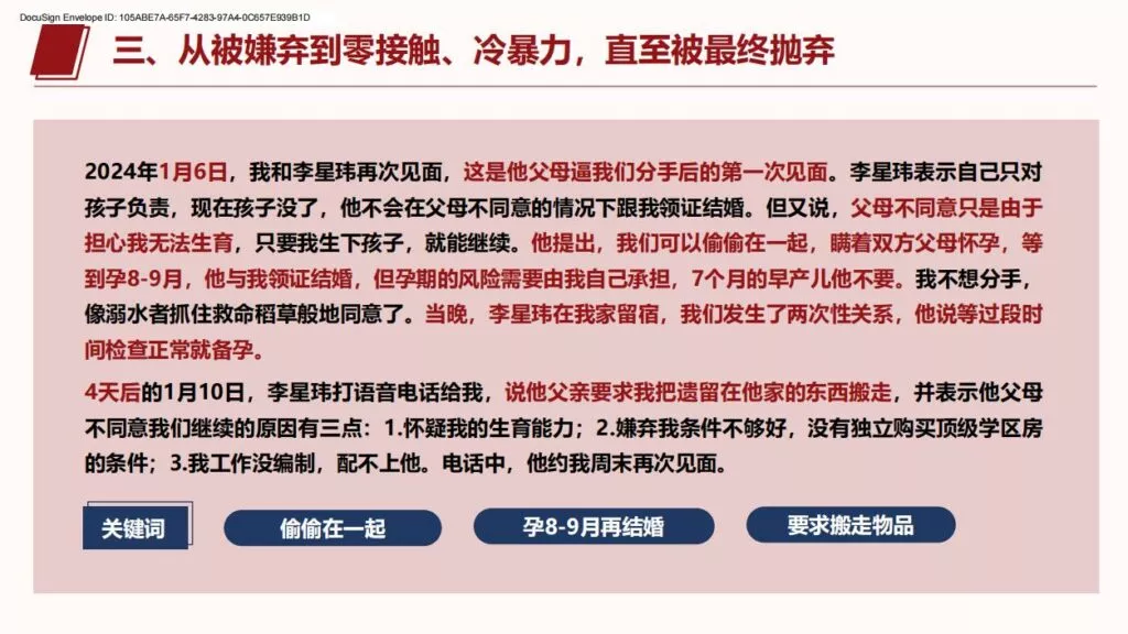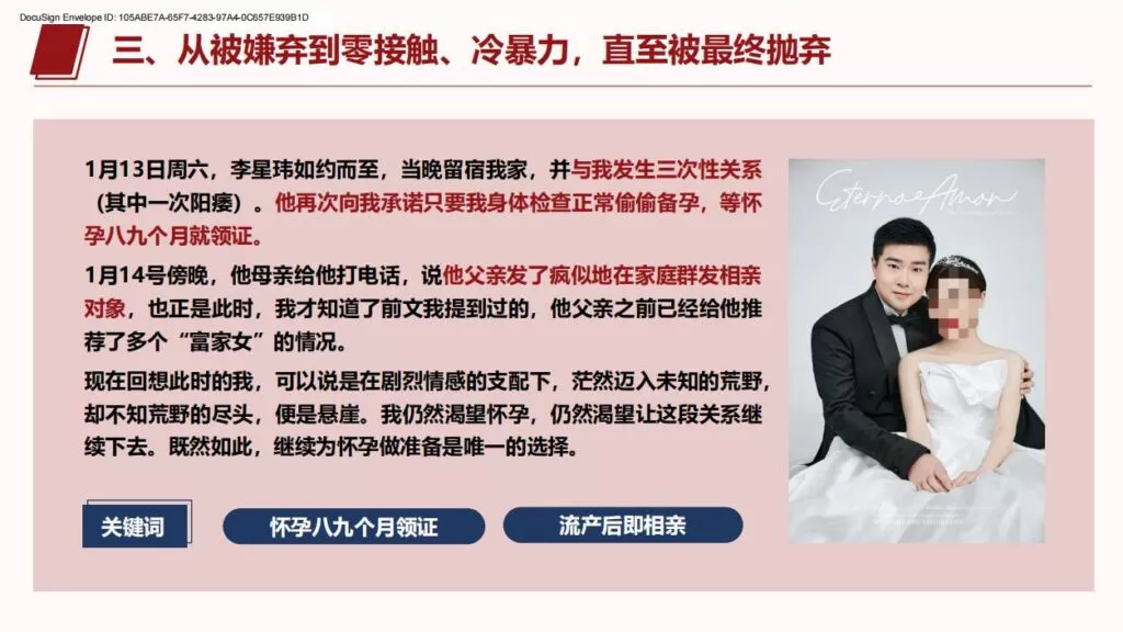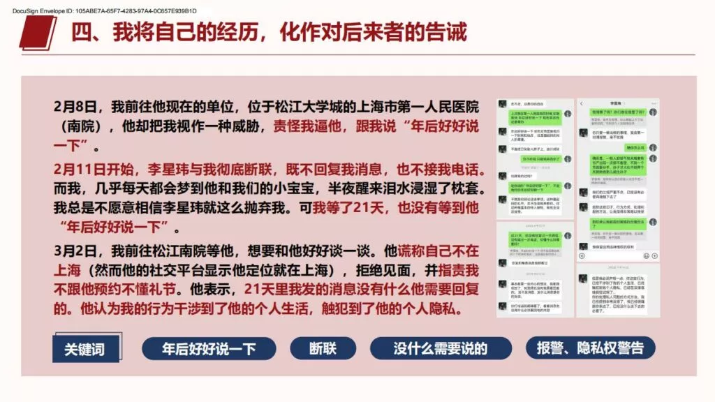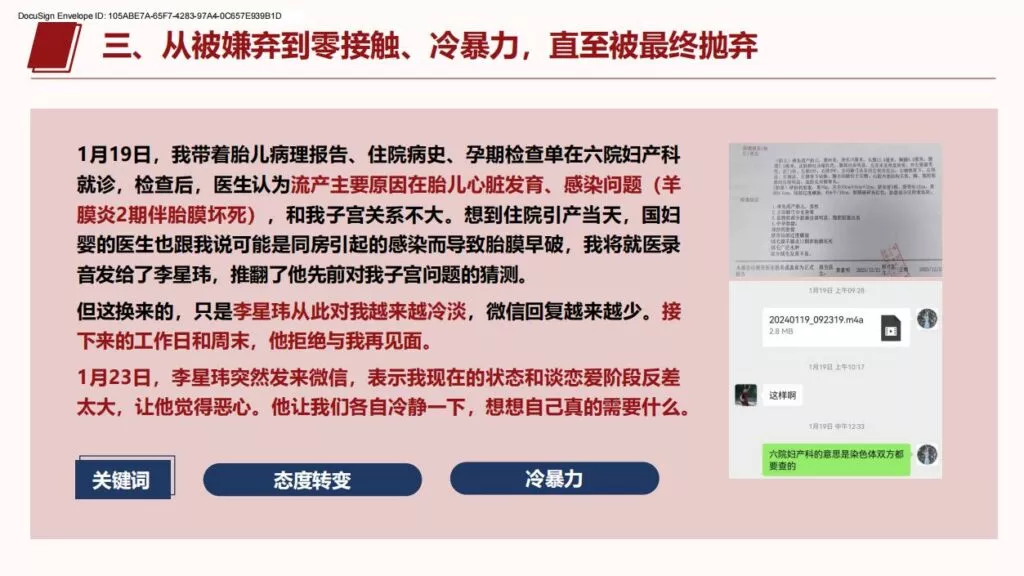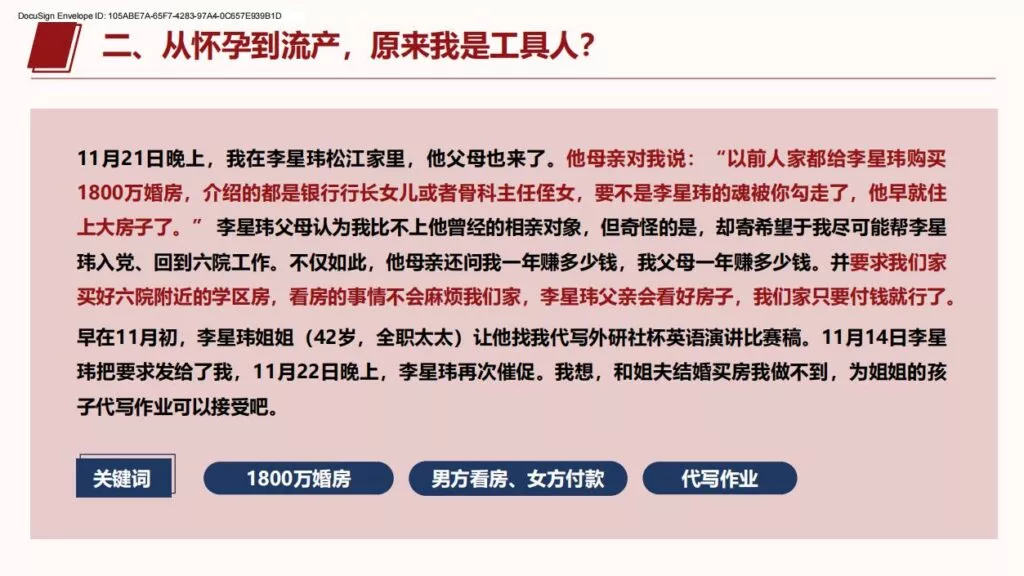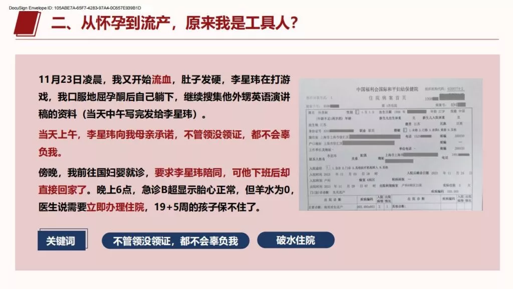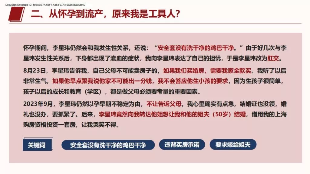 许久不见的PPT又来了,26页长篇PPT揭露上海交通大学医学院在读博士生李星玮,以从怀孕到流产,把女主当做是是工具人。孕期渣男要求多次同房,严重到女主住进医院,不知悔改的渣男最终导致女主流产。渣男金句:洗干净的JJ比套套还干净